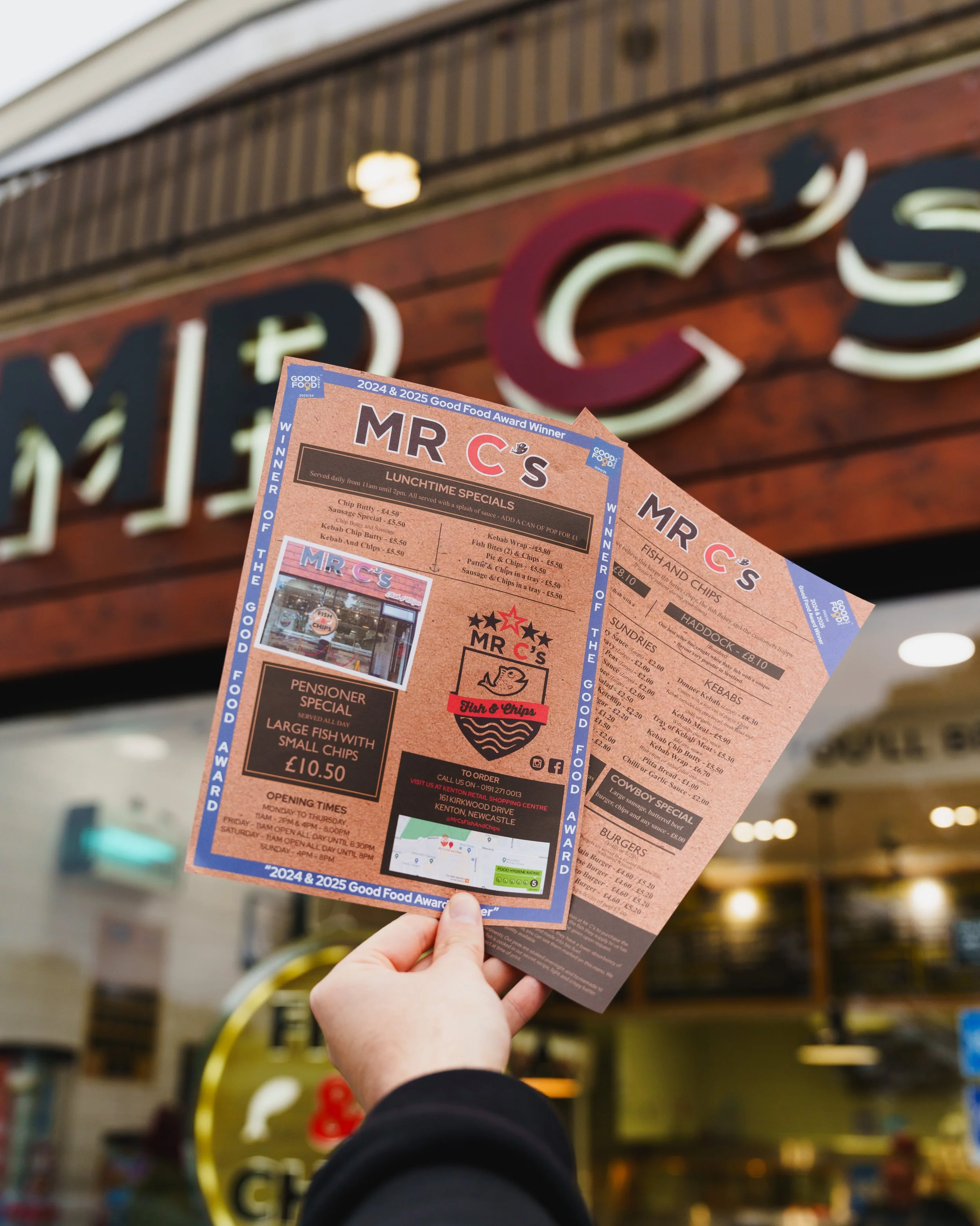 To say we are fussy about our fish at Mr C’s is an understatement. All our fish is MSC certified (which means it is from sustainable sources), and the very best quality. It is frozen at sea within hours of being caught ensuring the fish is as fresh when we cook it, as it was on the day it was caught. Our main aim is to give you the best possible service and the tastiest fish and chips.